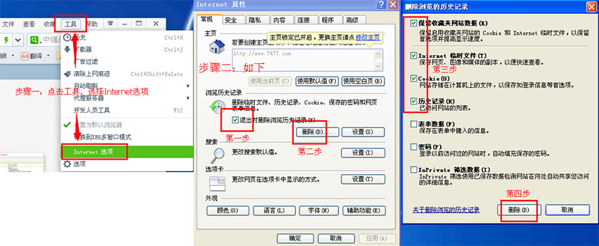 方法二:可尝试清理您的IE浏览器缓存,清理完毕后请先关闭您的浏览器;然后再重新打开浏览器并登录游戏;